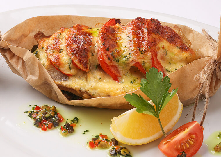 Филе морского окуня с рисом и овощами под сливочным соусом 380 |